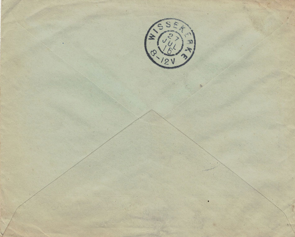 ---------- bij behorende enveloppe, met postzegel en op de achterkant het kleirondstempel van Wissekerke, Prijs € 10