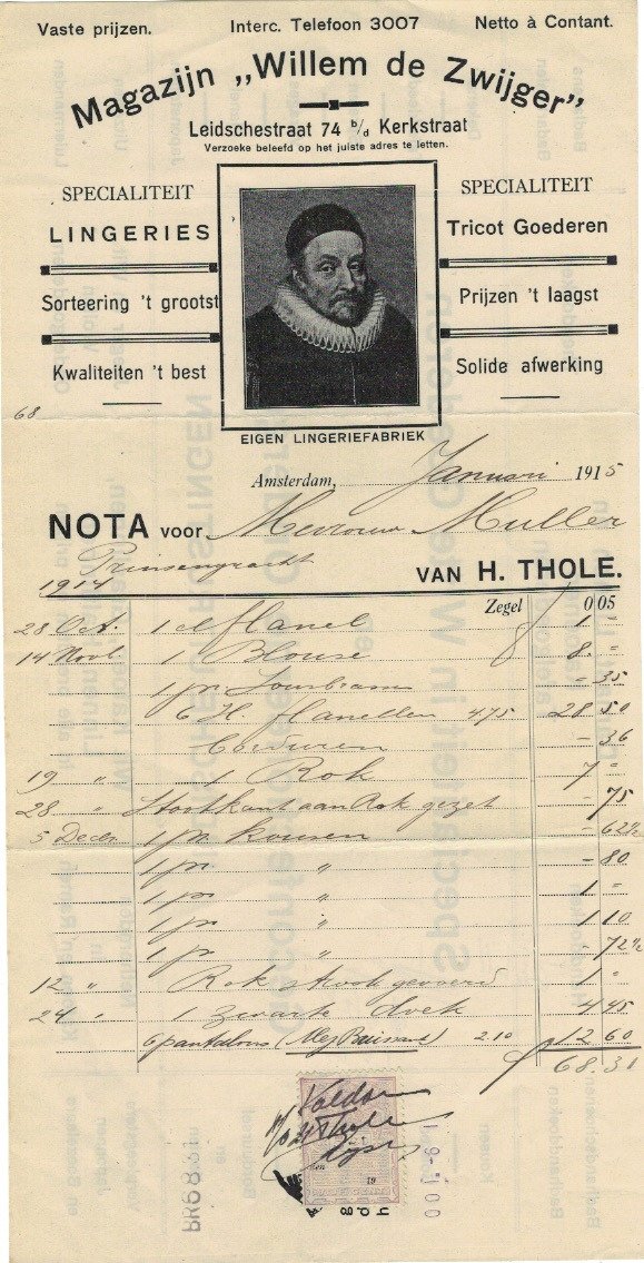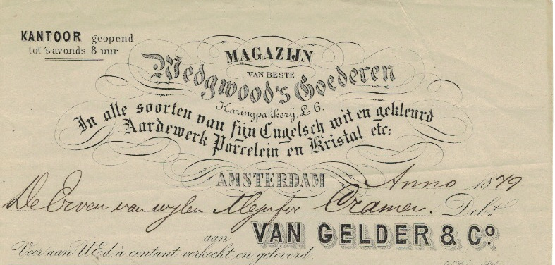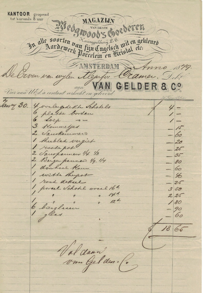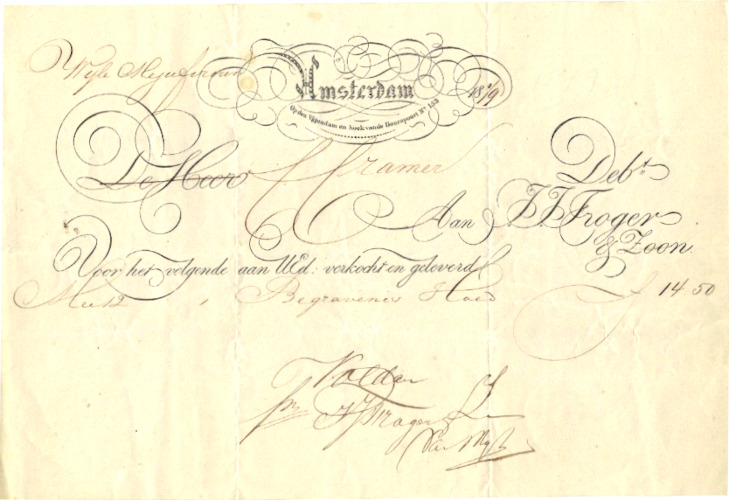Amsterdam, 1891, nota met prachtig briefhoofd over de gehele breedte.
