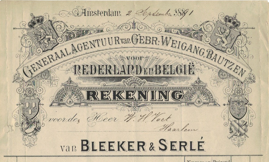 Amsterdam, 1891, nota met prachtig briefhoofd over de gehele breedte.