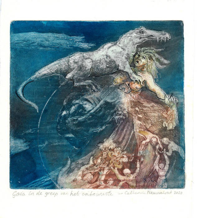 Etchings Etching is an old, graphic engraving technique where you ‘scratch’ the plate. This could be a zinc plate, a copper one or these days also one made of cardboard or acrylic glass. Etching has a strong element of craftmanship, but is certainly worth the effort, because it gives you many added possibilities compared to drawing. Catharina Nieuwenhout |