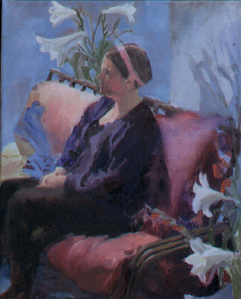 vrouw met lelies, 2004, 40 bij 50 cm.,