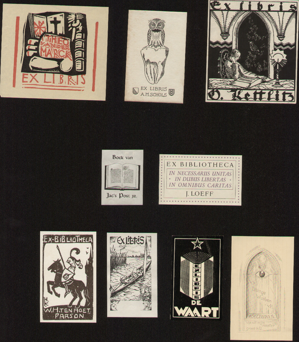 3e: ex libris G. M. van Wees; Teekening van de beroemde tekenaar Anton Piek 1934; (prijs € 50)