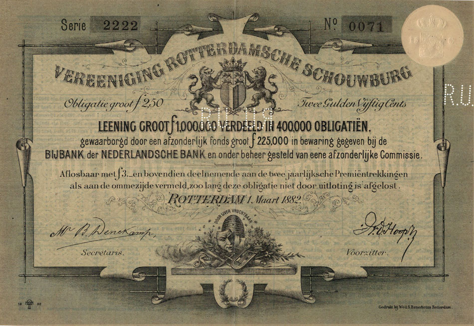 English: Rotterdam Theatre Society: lottery bond, 1882