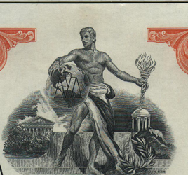 feet a laurel wreath of olive twigs; print: Security Columbian Banknote