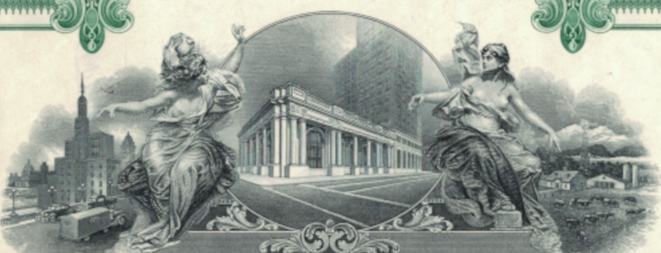 This engraving of the American Banknote Company is depicted on stocks of the Appalachian Power Co., BT Mortgage Investors and the Ohio Power, Co. (see items below).