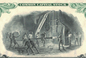 click for enlargement of this engraving of a steel plant interior --------------> |
